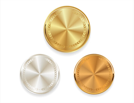 Abstract metallic banner with two round frames featuring polished gold, silver, and bronze finishes