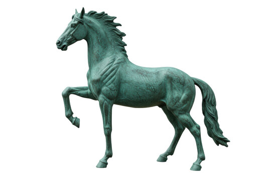Greek warrior on horseback statue, isolated on a Transparent background, PNG file.