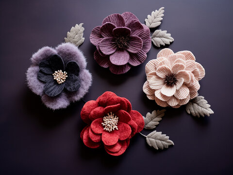Vibrant flower-shaped brooches crafted from felted wool