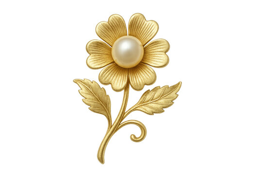 Gold flower pearl brooch jewelry on transparent background