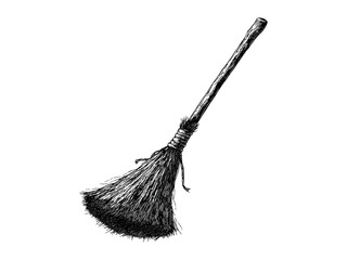 Halloween broomstick engraving, spooky vintage decor, hand-drawn black sketch style, retro seasonal element, horror icon, old engraving style, gothic illustration, dark art,
