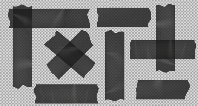 Set masking tape. Torn tape. Vector realistic black adhesive and yellow masking tape pieces. Isolated vector illustration