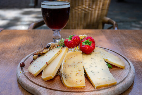 Tasting of different Belgian cheeses and dark strong Belgian beer served outdoor