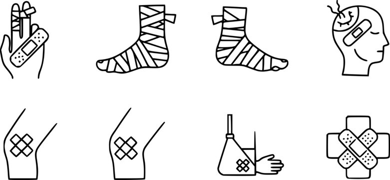 Vector set of injury with bandage line icon set