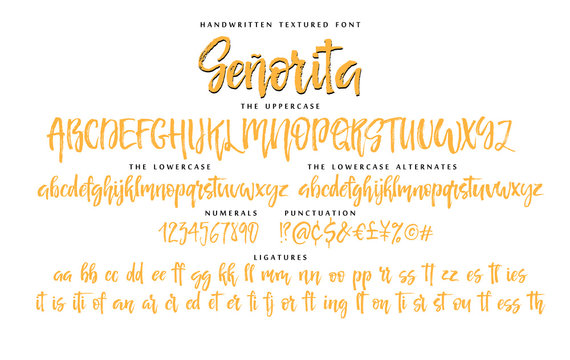 Vector hand drawn alphabet. Brush painted letters. Handwritten script alphabet. Hand lettering and custom typography for your designs: logo, for posters, invitations, cards, etc. Vector type.