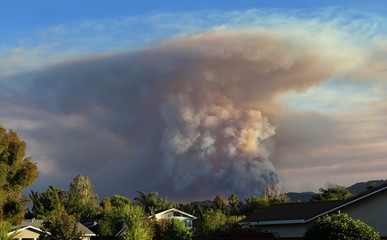 Detail Flame Burning Brush and Trees on Hillside in California Woolsey Fire