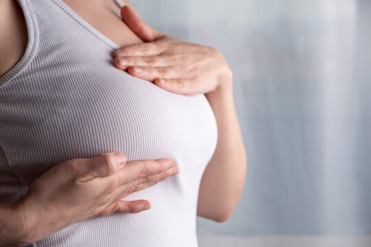 Woman checking her breast, breast self-exam (BSE), Breast Cancer Awareness