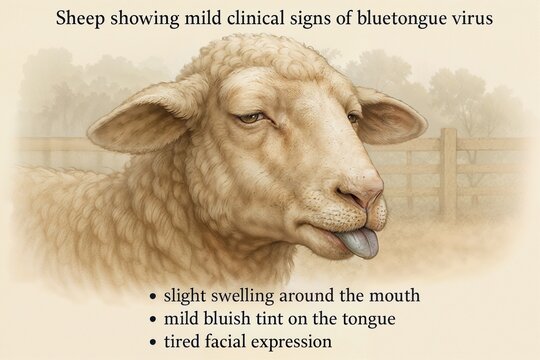 Sheep Showing Mild Clinical Signs of Bluetongue Virus – Veterinary Illustration