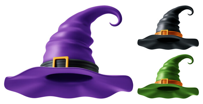 Whimsical witch hat with gold stars and buckle, isolated on transparent background, perfect for halloween, costume parties, and magical celebrations
