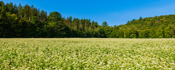 Blooming buckwheat (Fagopyrum esculentum) field in the Laurentides; Quebec, Canada