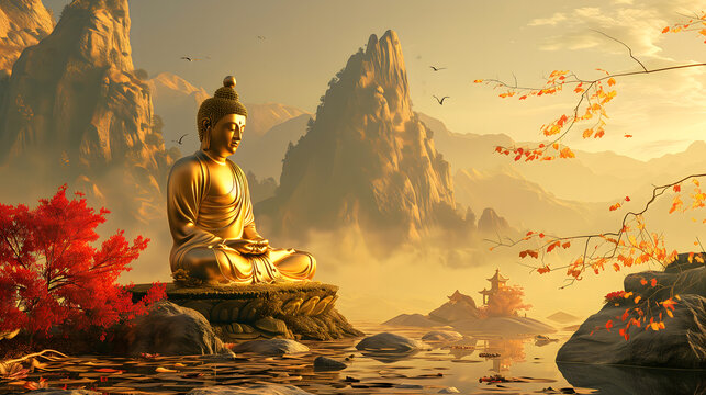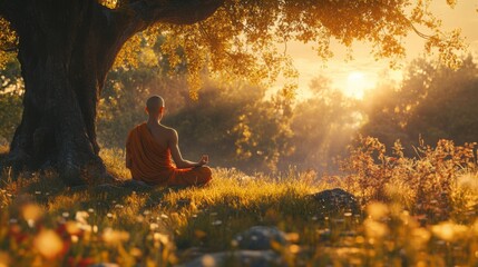 a monk meditating in nature, created by a neural network, Generative AI technology