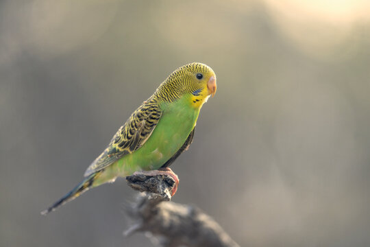 Wild budgerigar (Melopsittacus undulatus) perched on a branch, South Australia, Australia