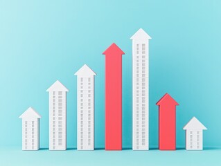budget opportunity expansion real-estate growth concept. Graphical representation of rising growth trends with buildings.