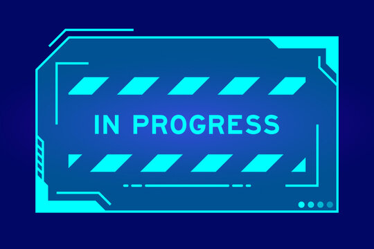 Blue color of futuristic hud banner that have word in progress on user interface screen on black background