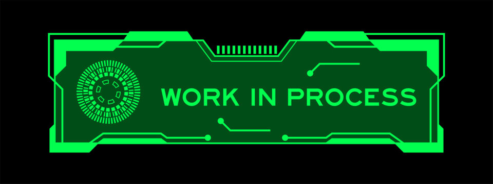 Green color of futuristic hud banner that have word work in process on user interface screen on black background