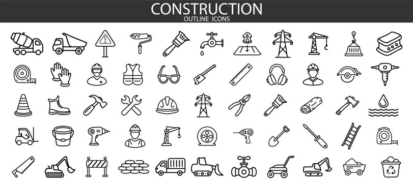 Labor Icons Set in Line or outline Style related to labor, construction, labor day, renovation. Icons For Web and Mobile Apps. Outline icons collection. Editable strokes. Vector illustration.