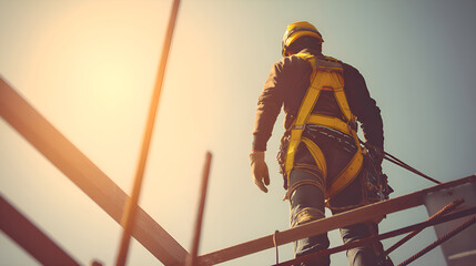 Confident construction worker in building framework setting