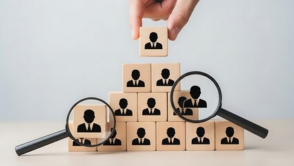 Business hiring concept with magnifying glass and icons