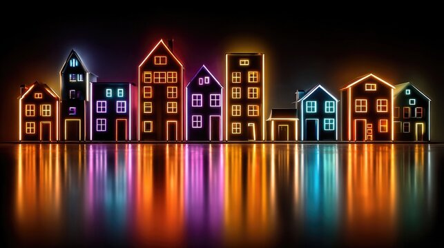Minimal Christmas Tree Made of Stacked House Outlines with Yellow Lights