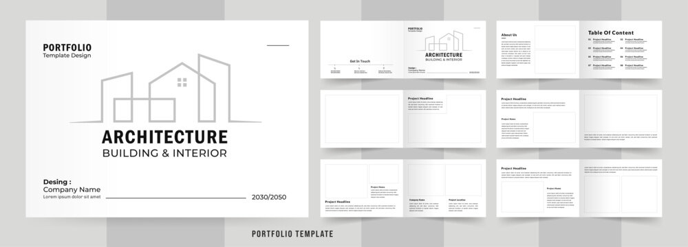 Landscape Portfolio Layout Architecture Portfolio Interior Brochure Design Vector Illustration