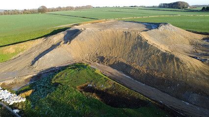 A drone view over the freeway cypress in Oakland, California during sunset with the downtown in the background.