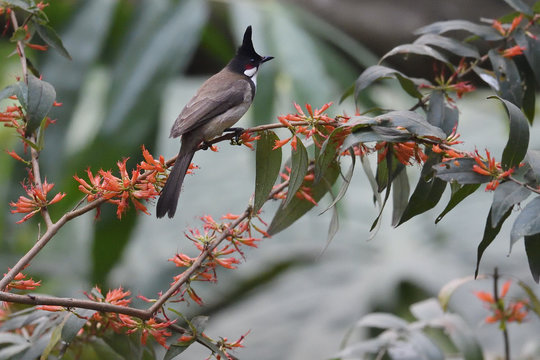 The red-whiskered bulbul (Pycnonotus jocosus), or crested bulbul, is a passerine bird native to Asia. It is a member of the bulbul family.