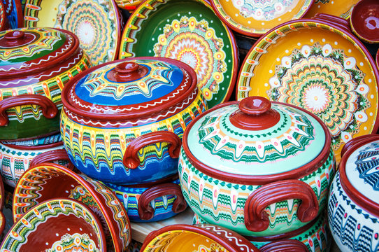 Traditional colorful Bulgarian clay pots