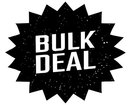 Black starburst sticker with white text reading bulk deal