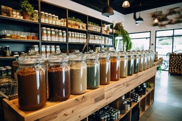 Self service bulk organic food. Eco-friendly zero waste shop. Small local business. Juliana soup, bulgur pasta and noodles