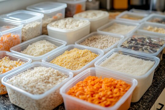 Organized Meal Prep Containers on Kitchen Worktop