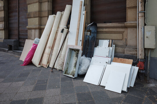 Bulk garbage day concept, miscellaneous rubbish items put on a street for council bulk waste collection