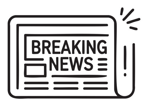 Black and white illustration of newspaper with breaking news headline - stock vector