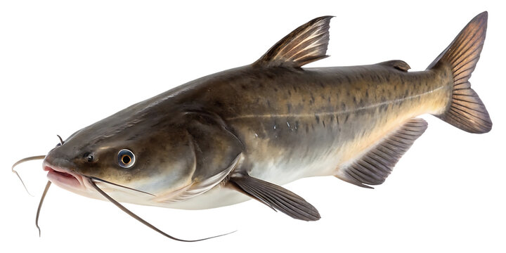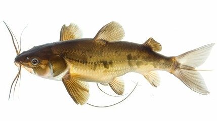 Brown bullhead or black bullhead catfish, Ameiurus melas isolated on white background.