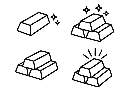 Gold bar and ingot outline icon set. Vector illustration of stacked gold bullion for finance, banking, and investment concepts. Simple line art of wealth and treasure symbols.