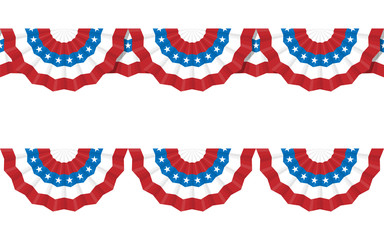 Bunting garland set with semicircle flags. USA independence day. Isolated vector and PNG illustration on transparent background.
