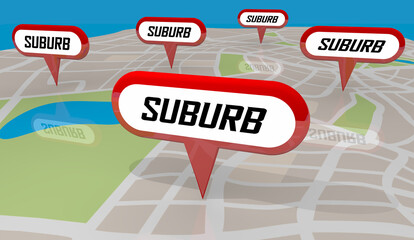 Suburbs Communities Neighborhoods Areas Map Pins 3d Illustration