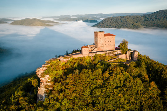 Burg Trifels Luftaufnahme und Landschaft Annweiler Landschaft Deutschland Reiseziele