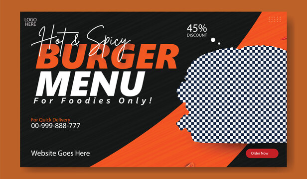 Delicious hot and spicy burger menu for foodies with a 45 discount offer and website information