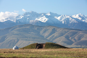 Archaeological excavations in a burial mound near the city of Almaty and a nomadic yurt, Almaty, Kazakhstan