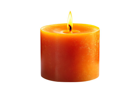 A burning orange candle Isolated on White and Transparent Background PNG Image.