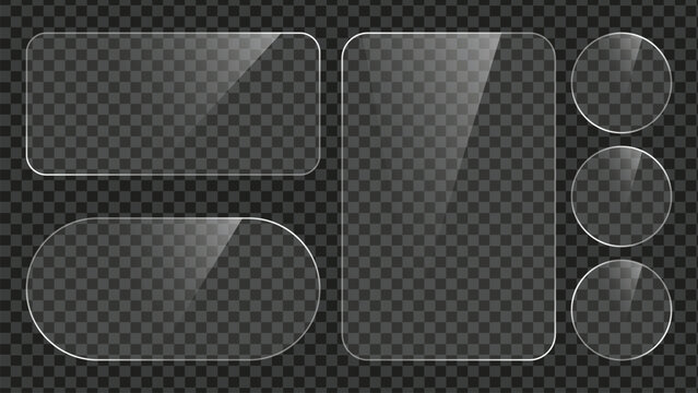 Glass plate frame Glossy window glass with reflections isolated on transparent surface