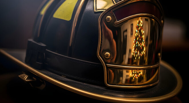 The Firefighter's Fortress: The burnished brass and glossy black of a firefighter's helmet, a symbol of courage, duty, and the unwavering protection of those in need.