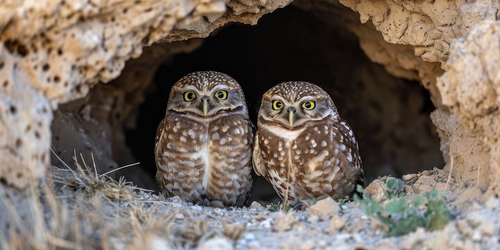 Two western burrowing owls.   They are a ground dwelling  bird found in the desert regions east of Bend, Oregon