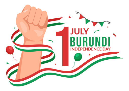 Burundi Independence Day on 1 July Vector Illustration with Flag Ribbon in National Holiday Flat Cartoon Hand Drawn Landing Page Templates