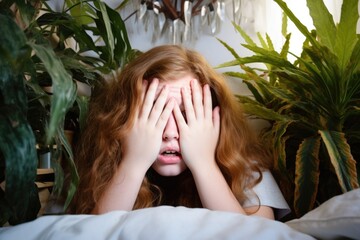 A Young boy sitting on the stairs with his face buried in his hands, expressing sadness and solitude. Fighting depression.