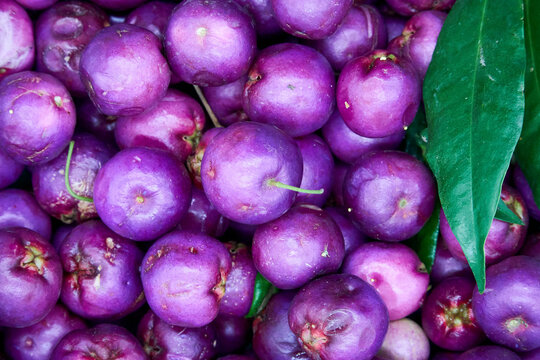 Close up of the ripe purple berries of Lilly Pilly, Syzygium smithii, a plant used for bush tucker