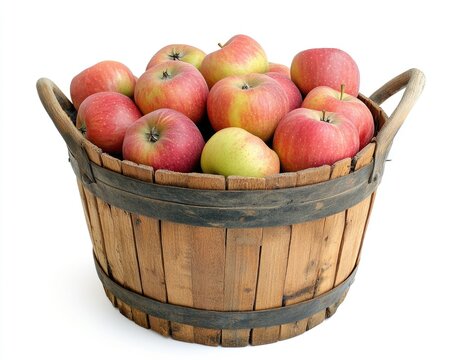 Apples in a Wooden Basket on white