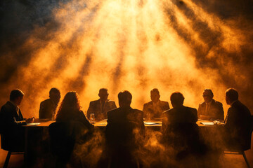 Networking and socializing among business professionals during an evening event with sparkling lights, Business people networking at an evening event with golden lighting Business concept