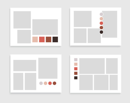 Photo collage template. Mood board grid layout. Photo frame mockup with color palette and quote. Vector illustration