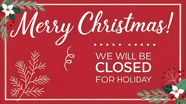 Chalkboard with 'closed for holidays' sign on a wooden table, festive decor in background.